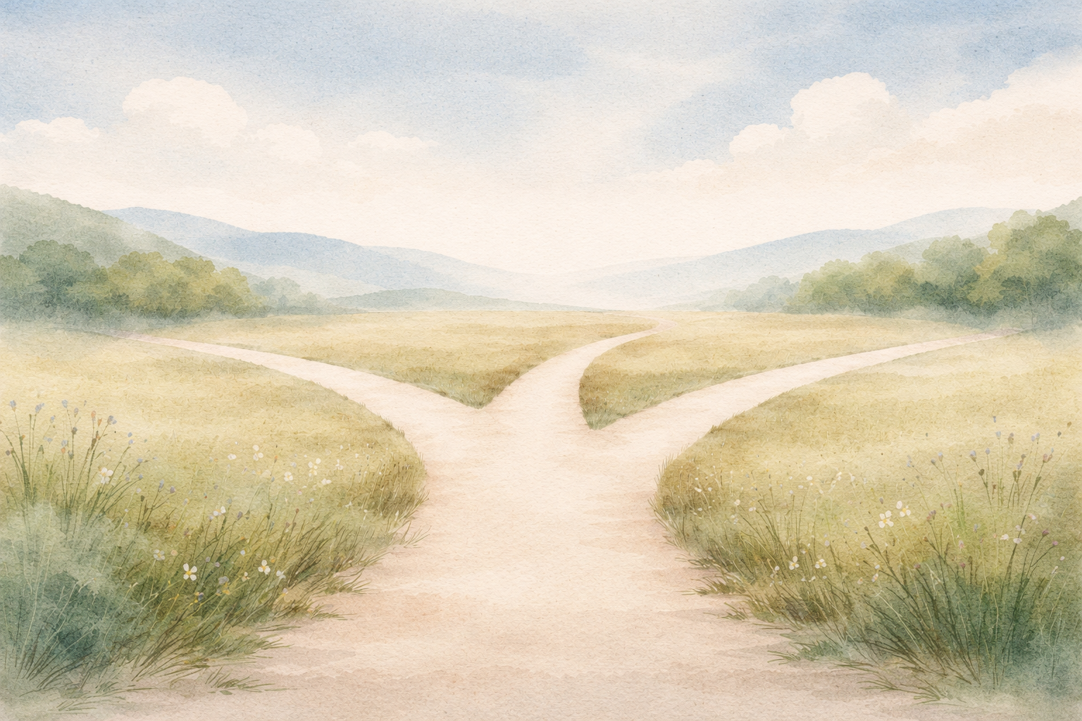 We’re going to imagine three parallel tracks our lives could take from right here, right now. For me it’s the very end of December 2025, but whenever it is for you, let’s pretend we’re driving in each one of these tracks for about a year, and we’re going to check in on the imaginary version of us in each lane.